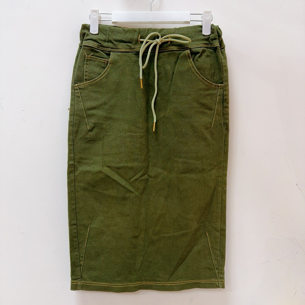 軍綠色後開岔牛仔裙(新)