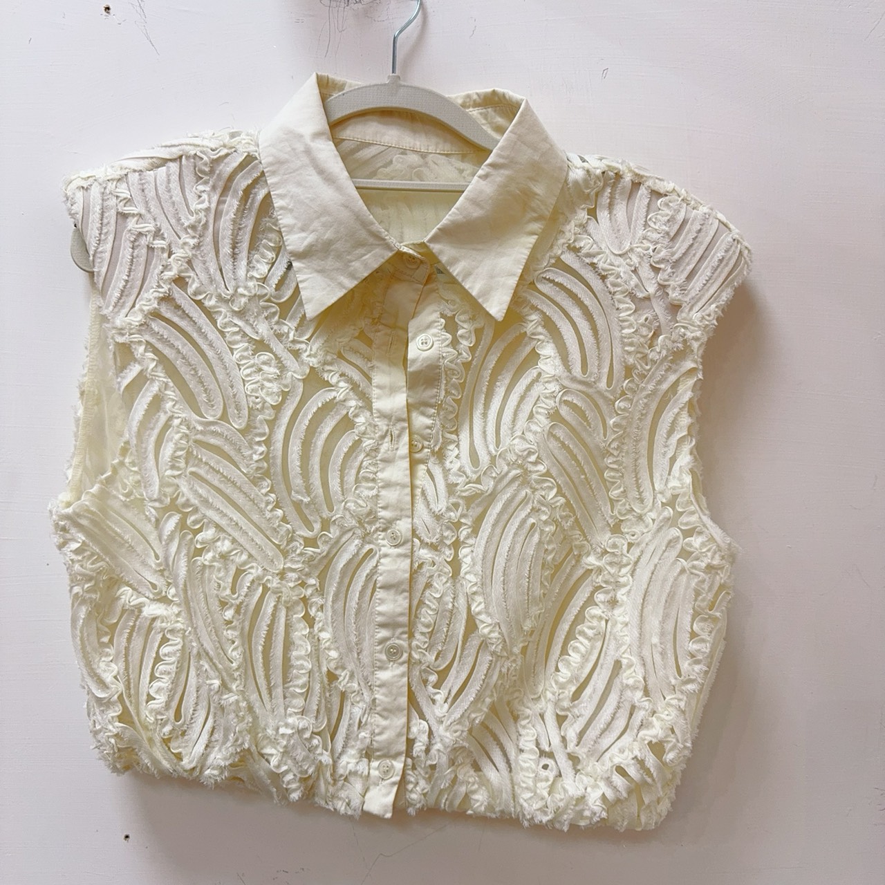 立體波浪紋理雪紡無袖襯衫(新)