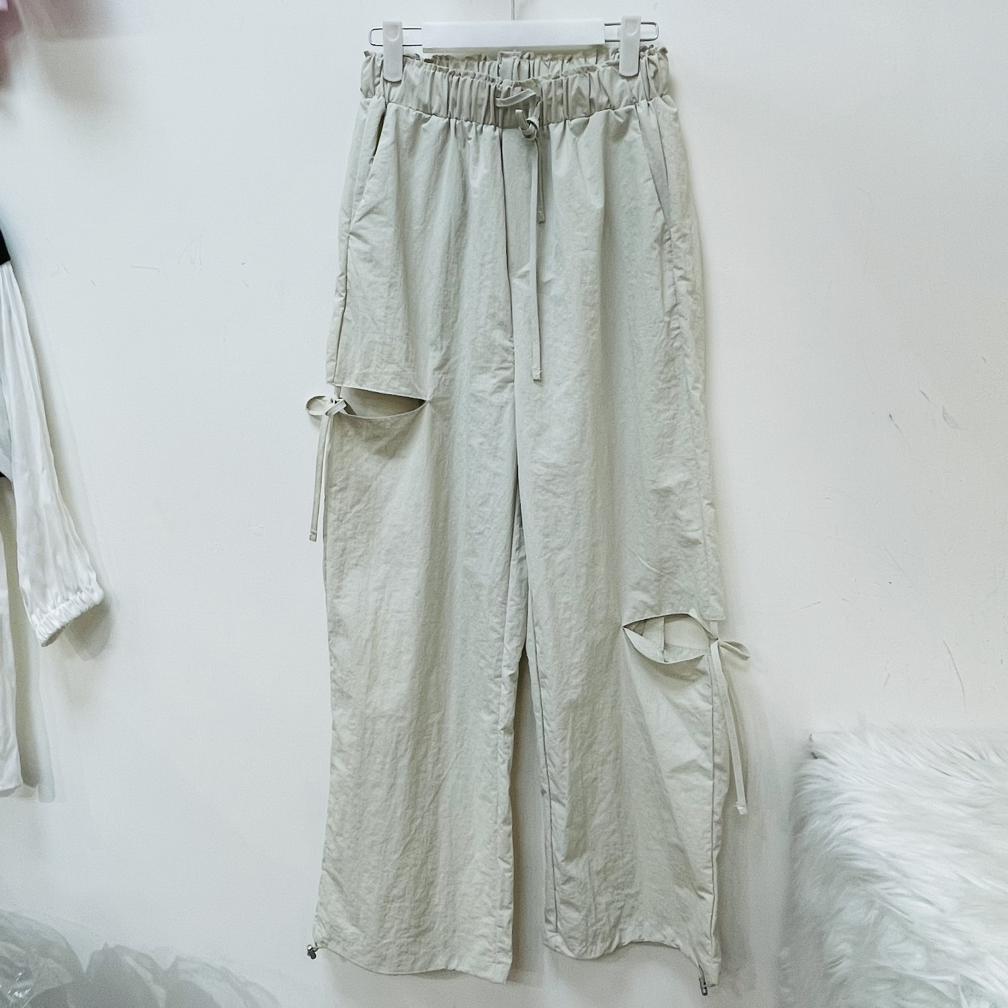 破洞綁帶蝴蝶結長褲(新)象牙白