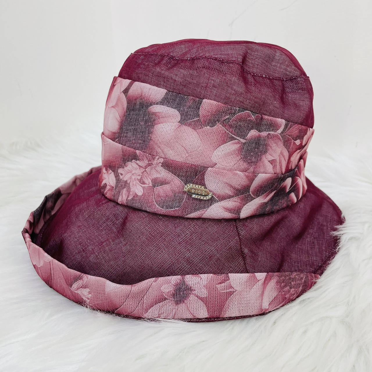酒紅色花卉遮陽淑女帽