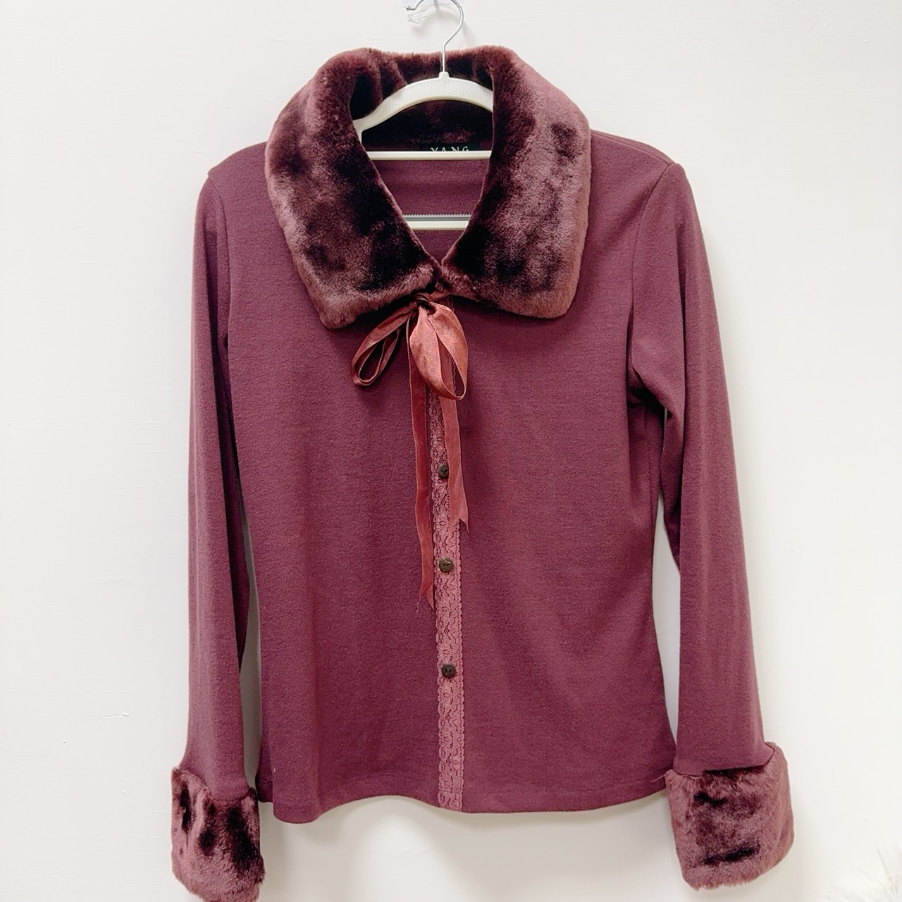 拼接毛毛長袖上衣