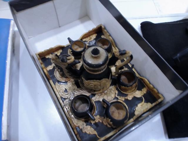 雕刻漆石茶具(盤小瑕疵)