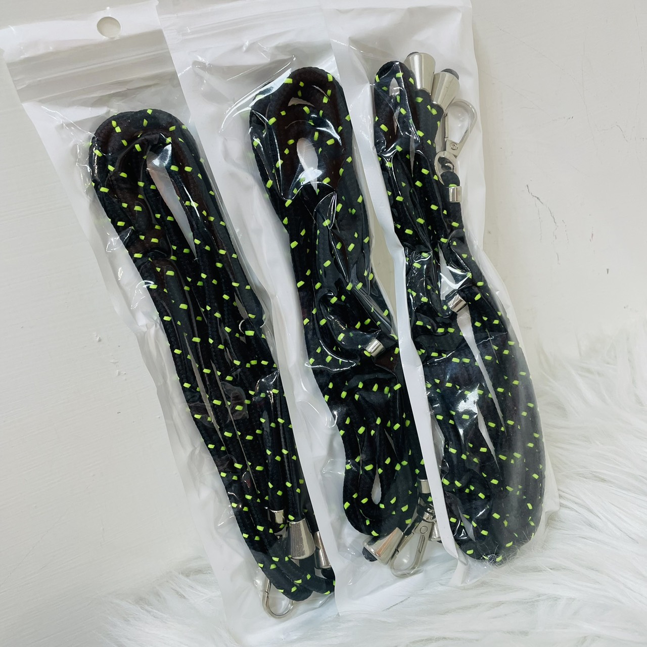螢光綠點綴的手機背帶