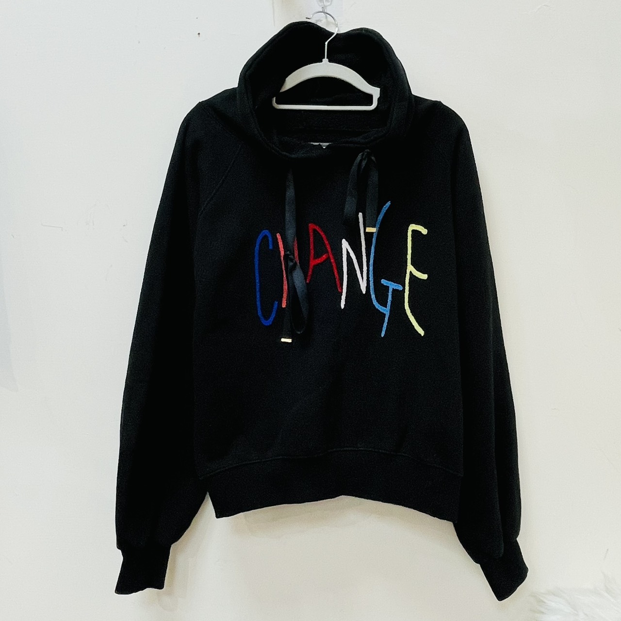 彩色刺繡字母內刷毛帽 T