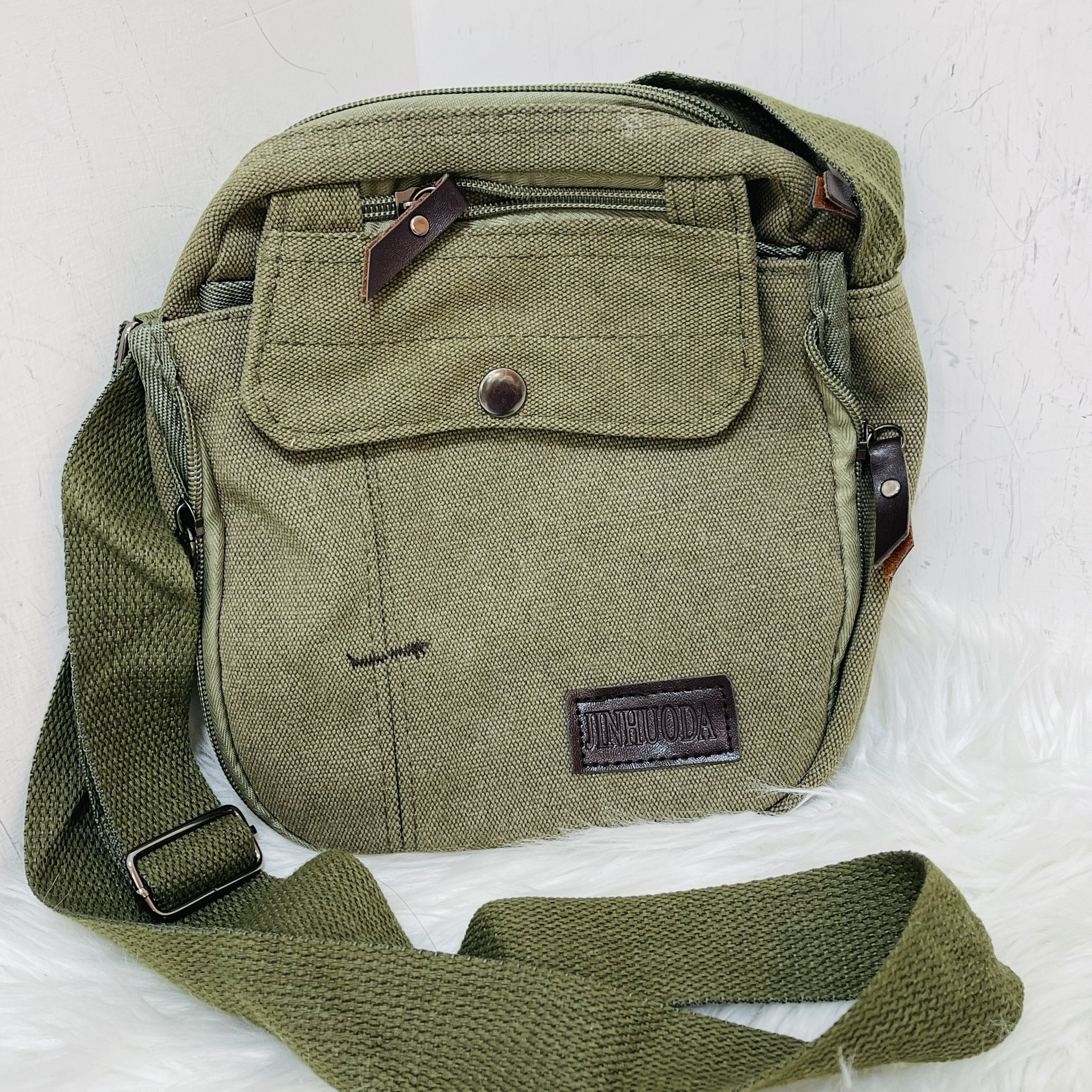 軍綠色多功能斜背帆布包