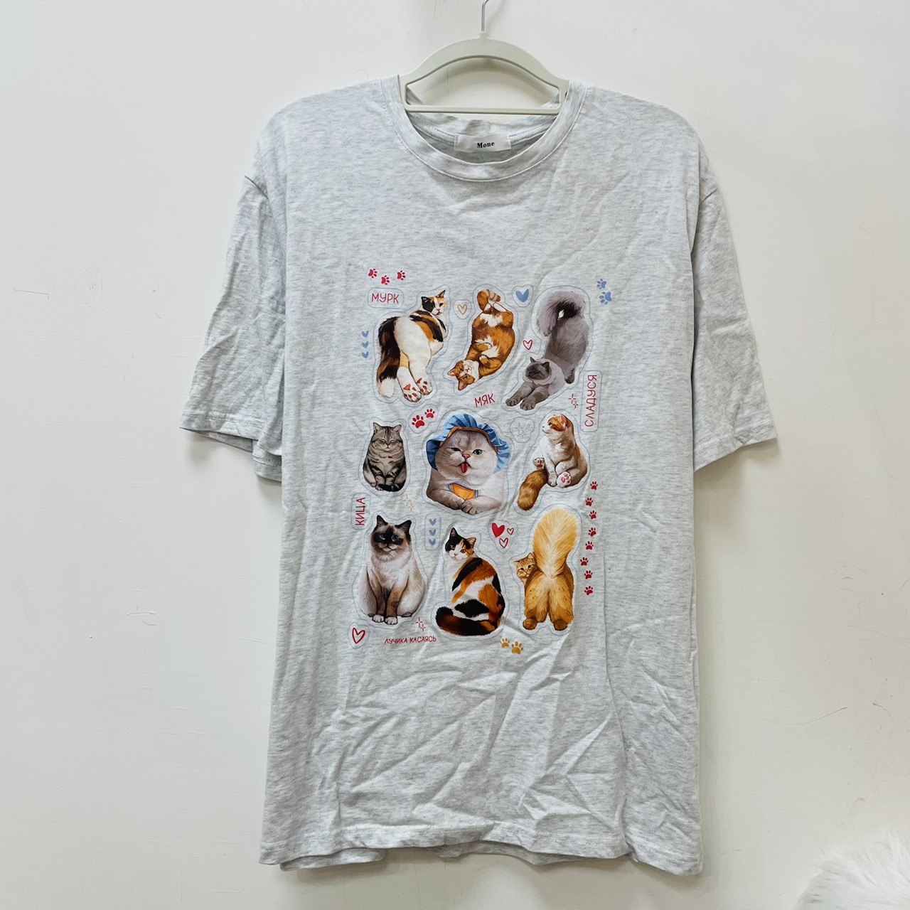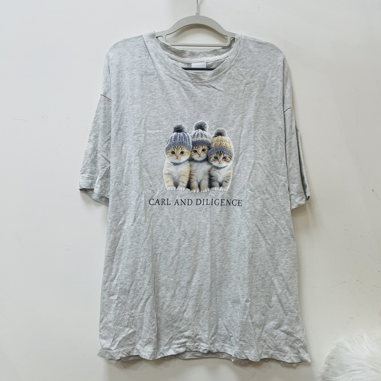 灰色三隻毛帽貓短袖上衣/ L
