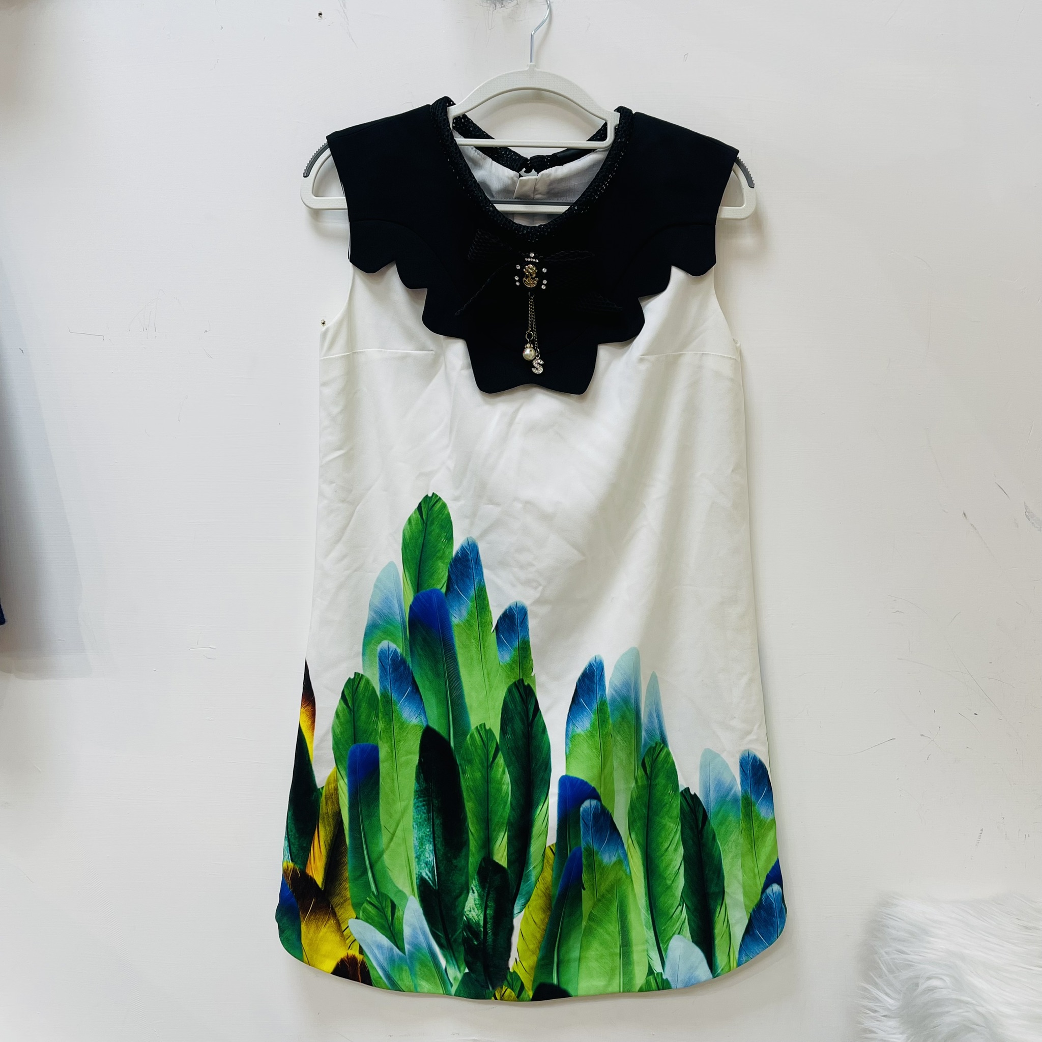 黑白拼色綠葉圖洋裝(新)