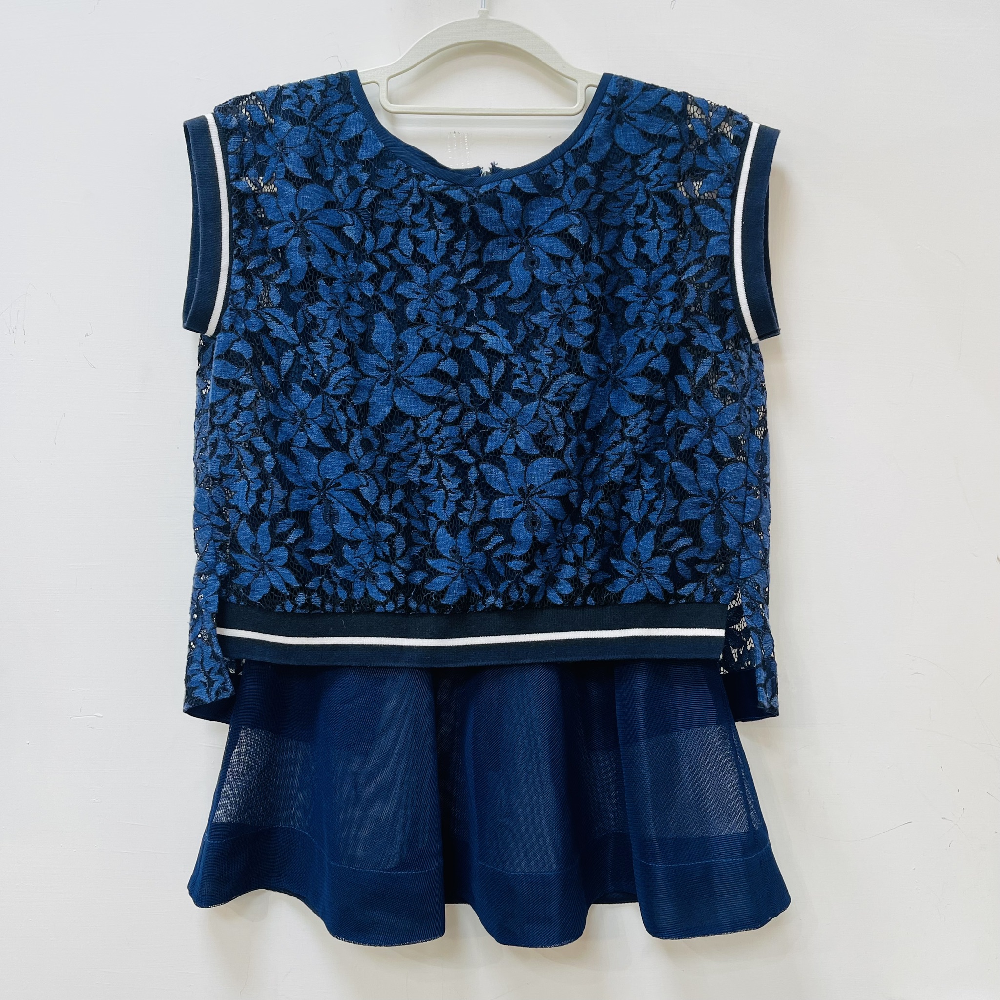 深藍色的無袖蕾絲上衣