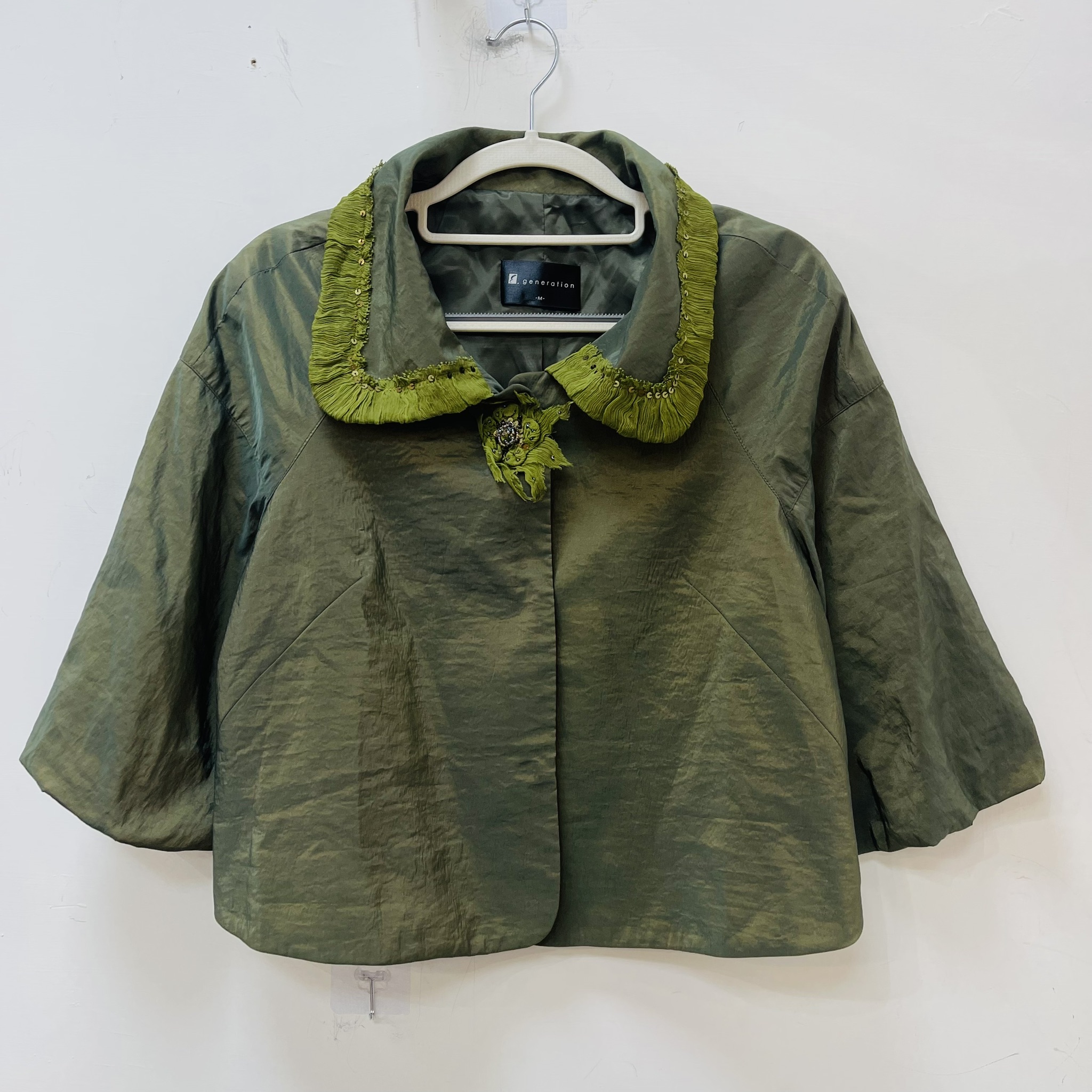 淺橄欖綠皺絲邊翻領外套/M
