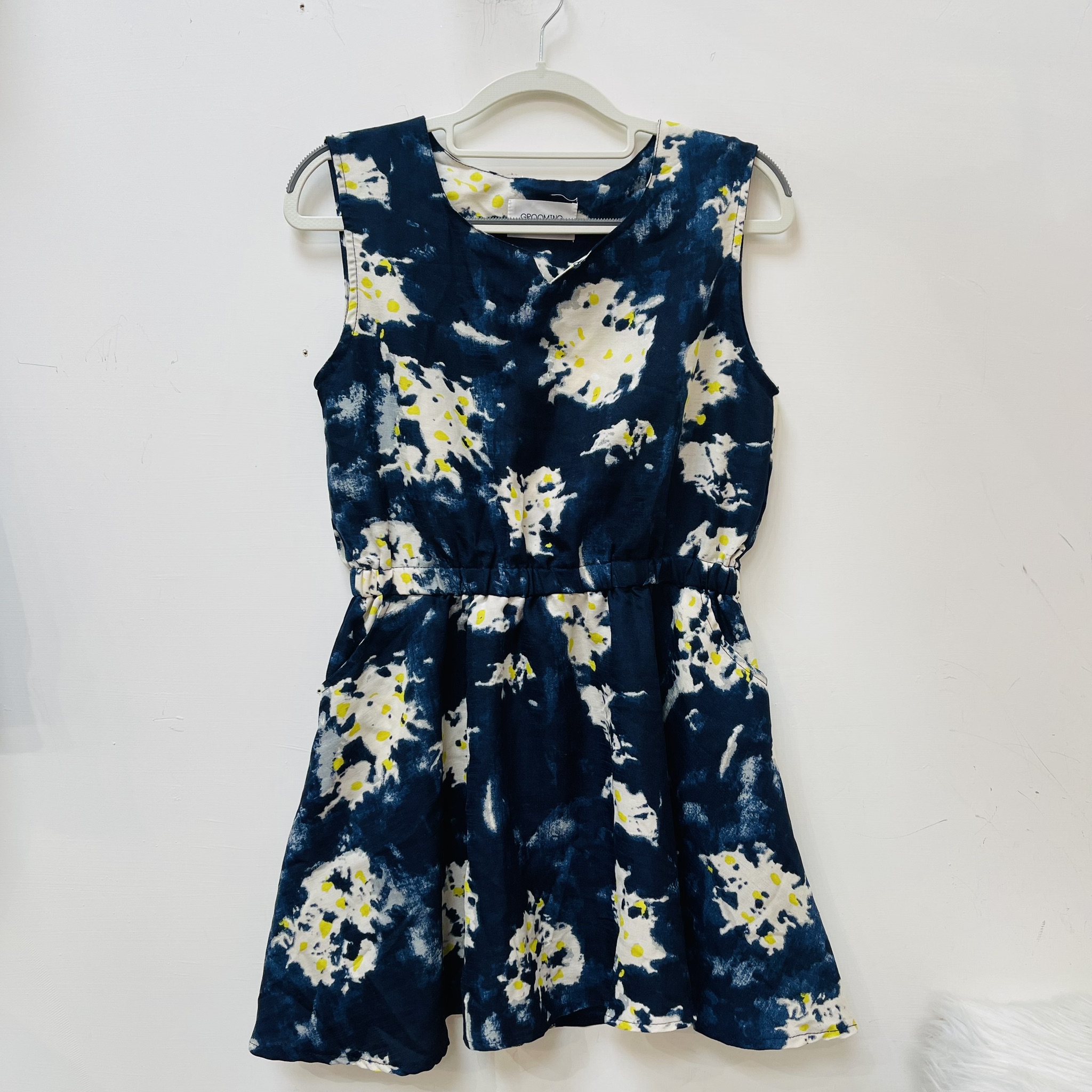 水染藍抽象圖短洋裝
