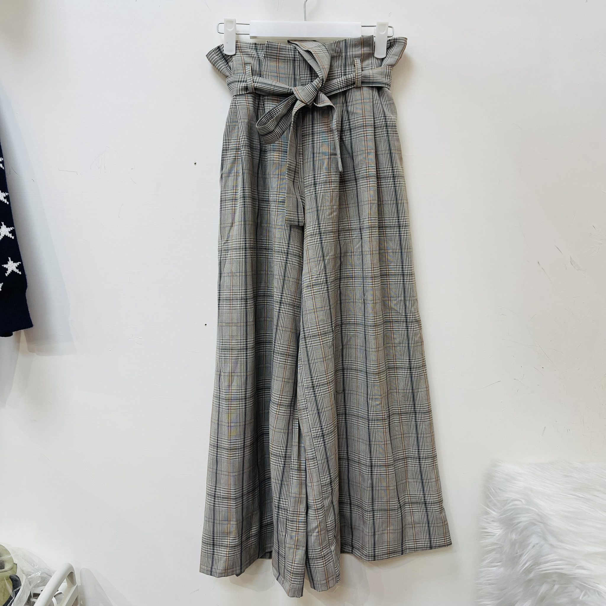 綁帶設計格紋長褲